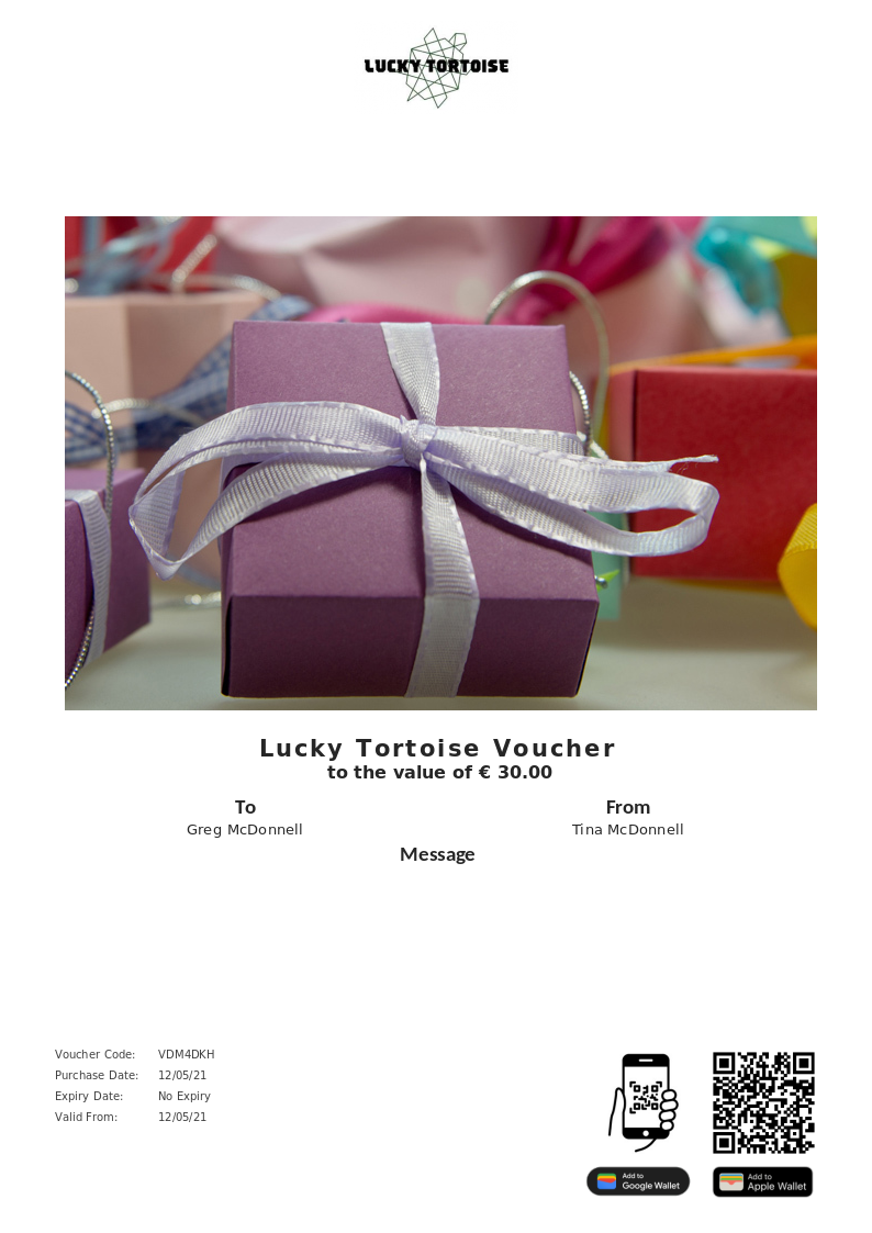 Lucky Tortoise allows you to purchase instantly printable gift vouchers, special offers and tickets using the Voucher Connect platform.